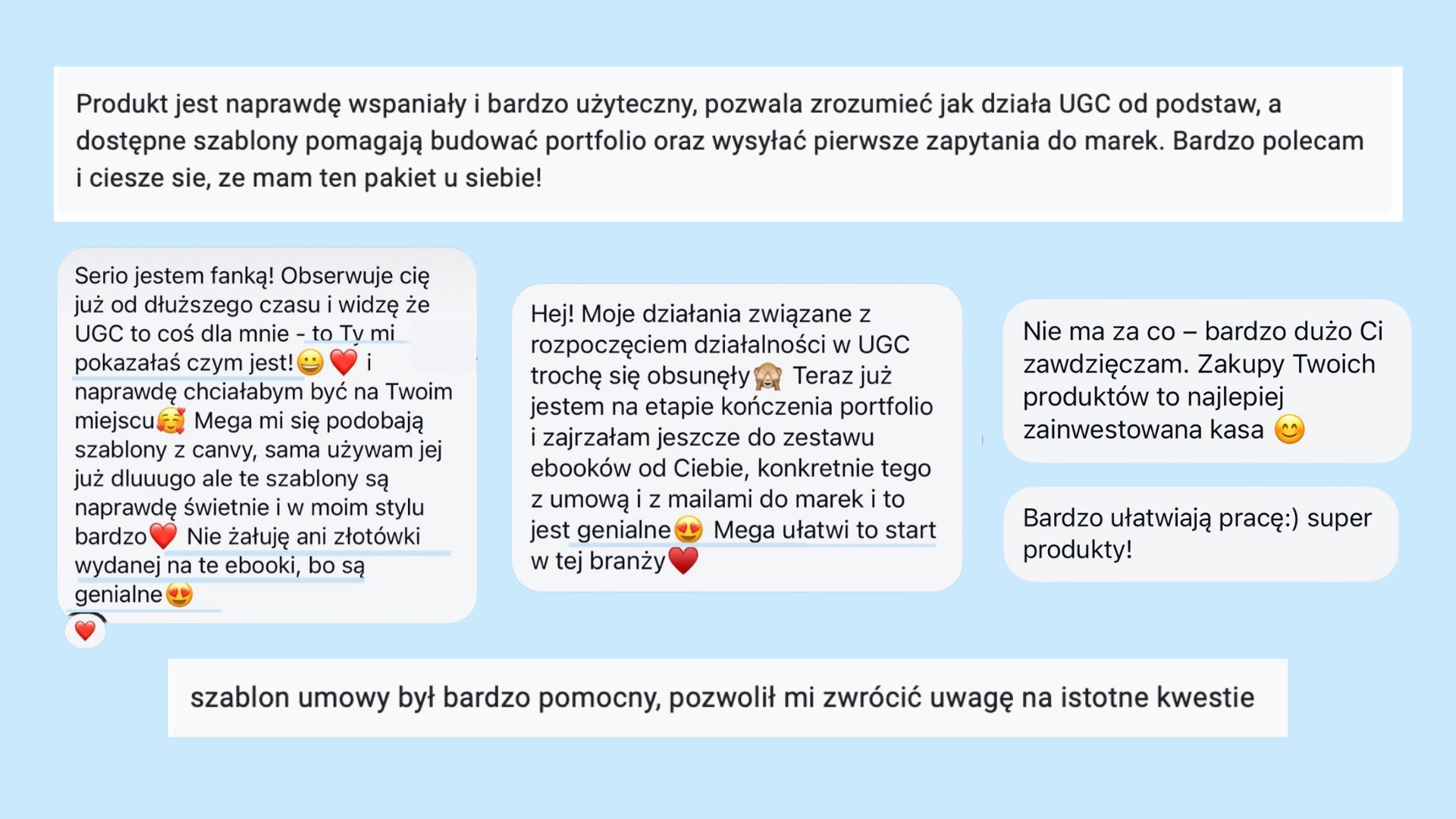 UGC STARTER PACK: Szablon umowy UGC, Szablony maili do marek, Szablony portfolio UGC + 3 poradniki