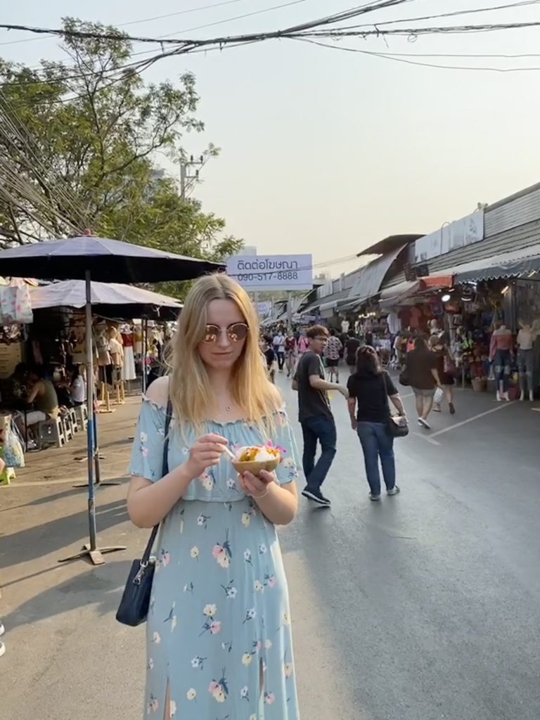 - Przykładowe ceny: lody kokosowe – ok. 60 ฿, krewetki w tempurze – ok. 100 ฿, dania z ryżem/sajgonki/szaszłyki – ok. 100 ฿, t-shirty/sukienki/kombinezony – ok. 100-250 ฿, naczynia ceramiczne – ok. 200 ฿